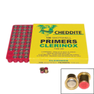 Scatola da 100 inneschi Cheddite Clerinox CX50 con camicia ottonata e vernice coprivampa rossa. Utilizzati di norma per la ricarica di munizioni di piccolo calibro.