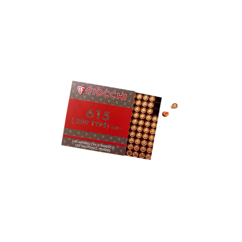 Scatola da 100 inneschi Fiocchi DFS 615 SUR, utilizzati di norma per la ricarica di munizioni spezzate di piccolo calibro (dal 20 al 36).