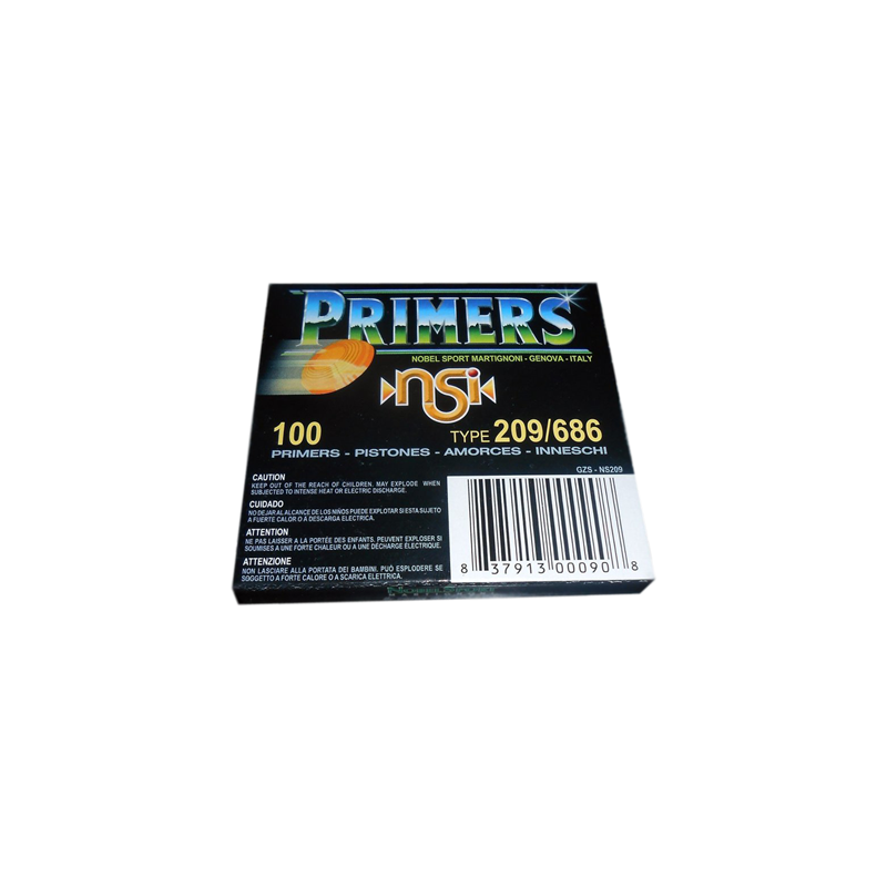 Scatola da 100 inneschi Nobel Sport Martignoni U-686 utilizzati di norma per la ricarica di munizioni spezzate per piccoli calibri (dal 16 al 36).